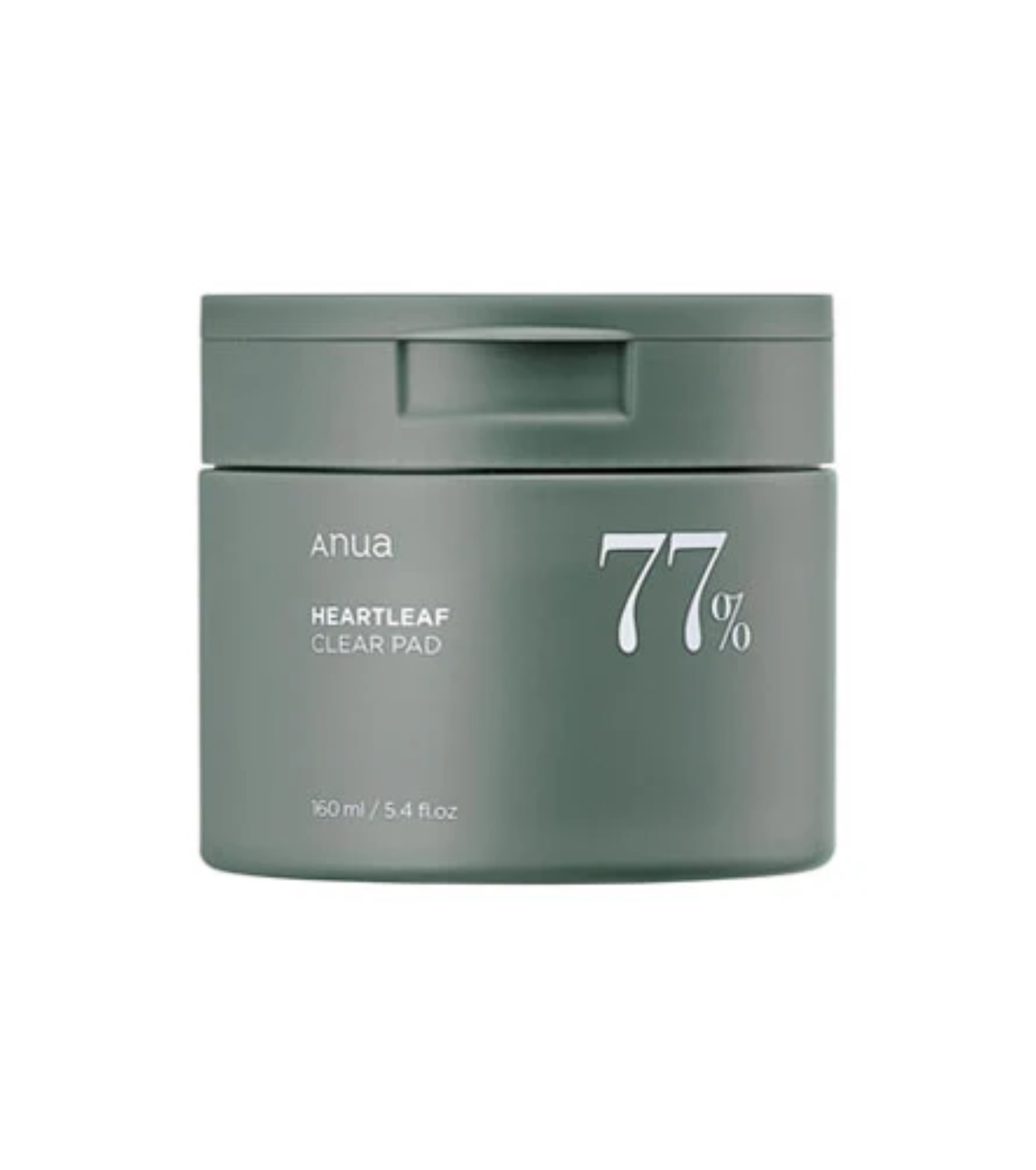 Los ANUA Heartleaf 77% Clear Pad son discos tónico calmantes formulados con un 77% de extracto de Houttuynia Cordata (Heartleaf), conocido por sus propiedades antiinflamatorias y purificantes. Ayudan a equilibrar la piel, eliminar las impurezas y mejorar la textura cutánea con una suave exfoliación diaria.
