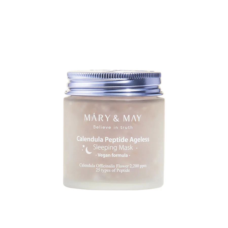 La mascarilla nocturna MARY & MAY Calendula Peptide Ageless Sleeping Mask está formulada con extracto de caléndula, 25 péptidos y ácido hialurónico para hidratar, calmar y revitalizar la piel mientras duermes. Su textura ligera en gel se absorbe fácilmente, proporcionando confort y nutrición intensa durante la noche. Ideal para pieles que buscan prevenir el envejecimiento y recuperar la elasticidad y luminosidad del rostro.