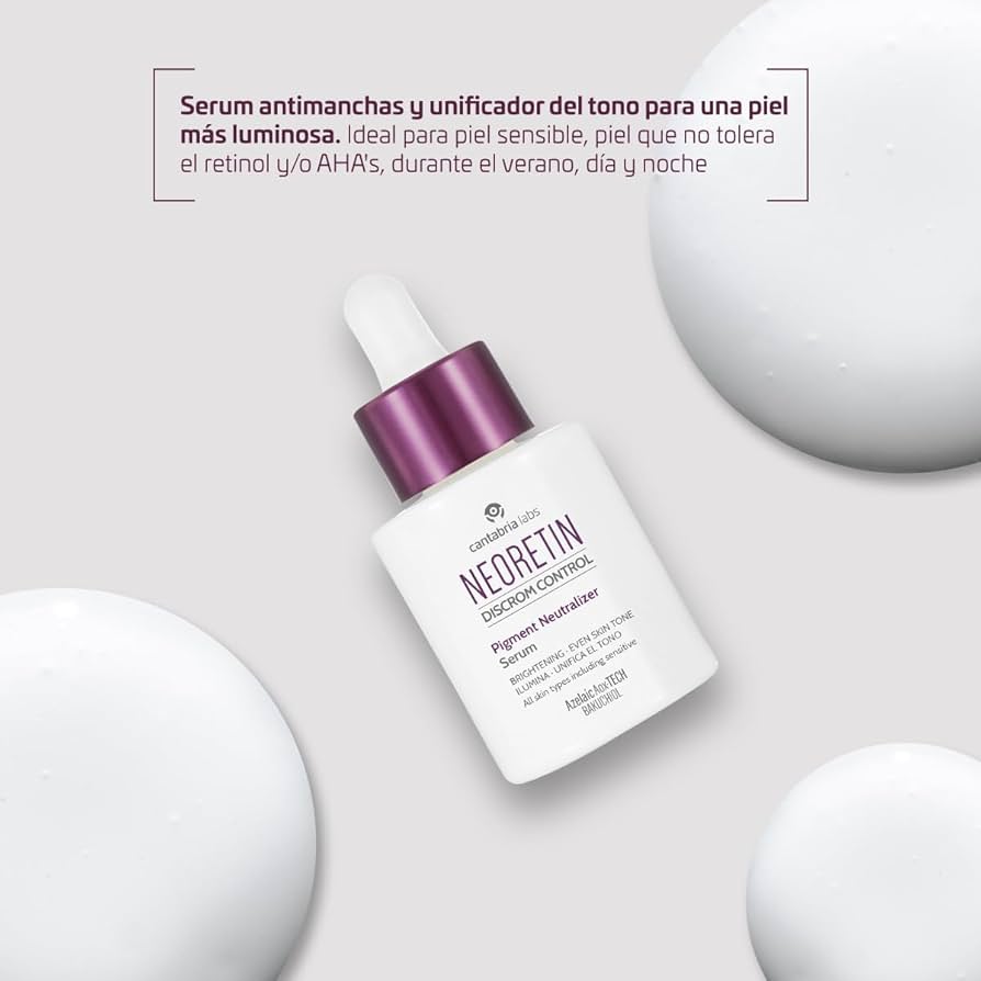 NEORETIN Discrom Control Sérum es un tratamiento avanzado para pieles con manchas y tono irregular. Su fórmula innovadora combina activos despigmentantes y antioxidantes que actúan en las causas del exceso de pigmentación, ayudando a reducir manchas oscuras, prevenir su reaparición y unificar el tono de la piel.